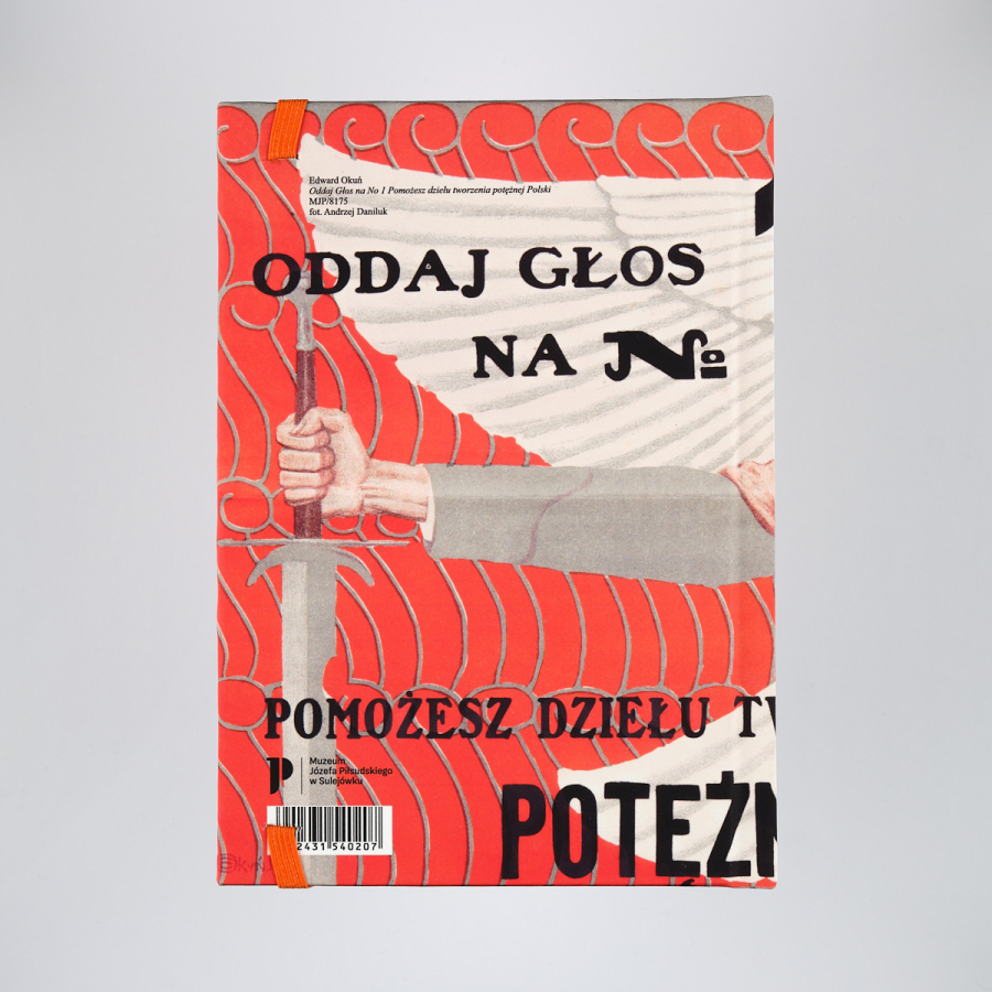 Wzór to reprodukcja plakatu przedwyborczego z 1919 roku, autorstwa malarza Edwarda Okunia: "Oddaj głos na [listę] No 1 - pomożesz dziełu tworzenia potężnej Polski!"