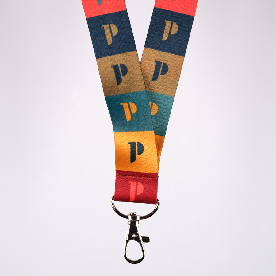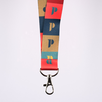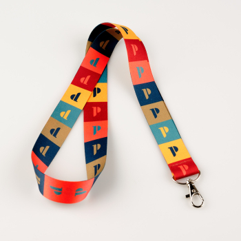 Smycz do kluczy w wielokolorowy wzór pattern z logo Muzeum Józefa Piłsudskiego.