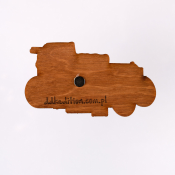 Magnes wydrukowany bezpośrednio na wyciętej laserowo sklejce o grubości 3mm. Motyw nawiązuje do pierwszego polskiego samochodu pancernego.