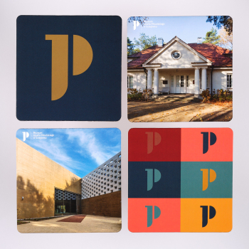 Prezentujemy wyjątkową podkładkę pod kubek, która nie tylko ochrania powierzchnię stołu przed zarysowaniami i plamami, ale także wprowadza unikalny klimat. Ta podkładka oferuje cztery różne wzory. Przedstawiony jest budynek muzeum Józefa Piłsudskiego w Sulejówku, Dworek „Milusin”, charakterystyczne logo Muzeum oraz wielokolorowe logo Muzeum w patternie.