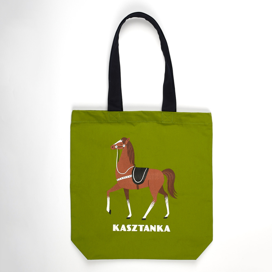 Torba wykonana z bawełny bez zapięcia. Motyw na torbie nawiązuje do Kasztanki, czyli ulubionej klaczy Józefa Piłsudskiego.