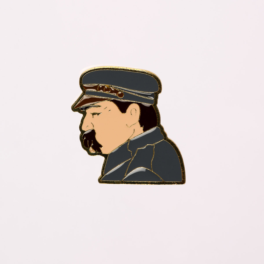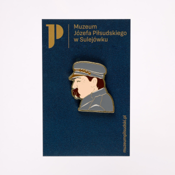 Produkt rzemieślniczy wykonany w całości z metalu i wypełniony ręcznie kolorową emalią. Motyw przedstawia podobiznę Józefa Piłsudskiego. Pakowany w folię ze sztywną tekturką.